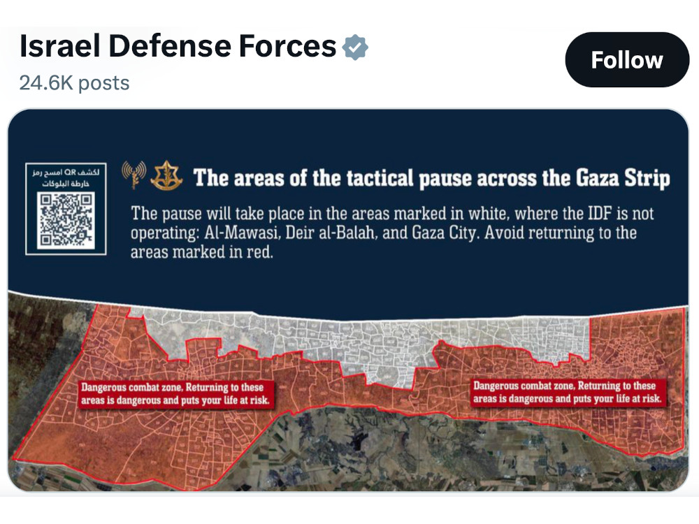 Image: a map released by the IDF shows the population of Gaza sqeezed against the coast.